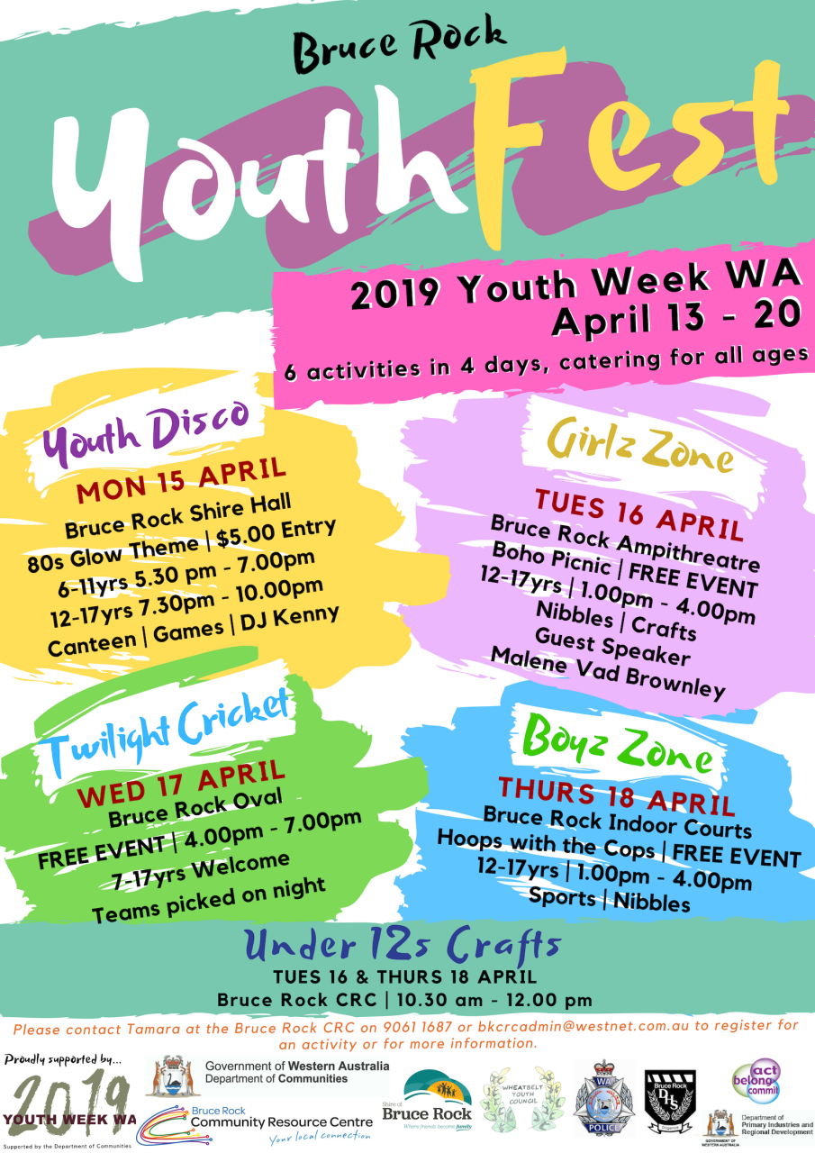 For the 2019 Youth Week WA, the Bruce Rock CRC has organised six activities in four days, catering for all ages!