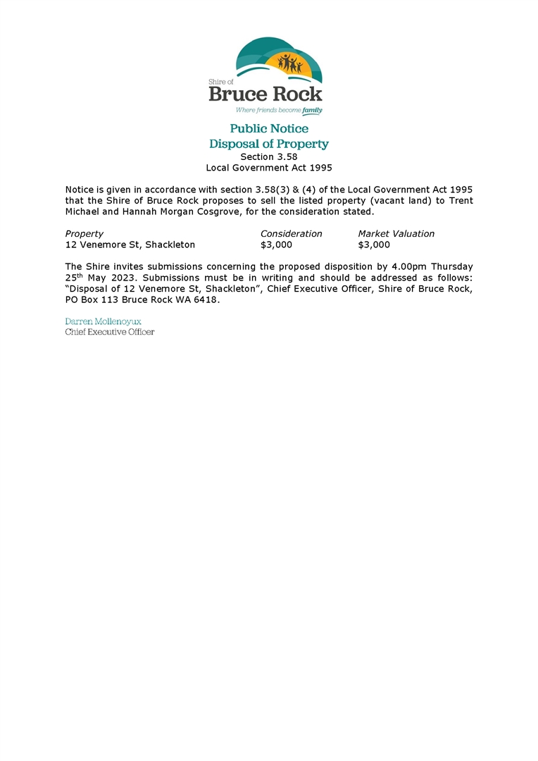 Public Notice Disposal of 12 Venemore St to T H Cosgrove