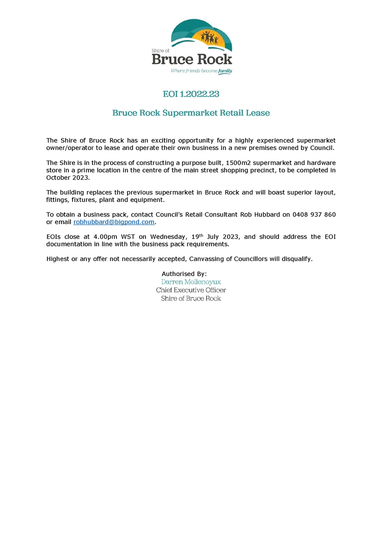 EOI 1.2022/23 - Bruce Rock Supermarket Retail Lease