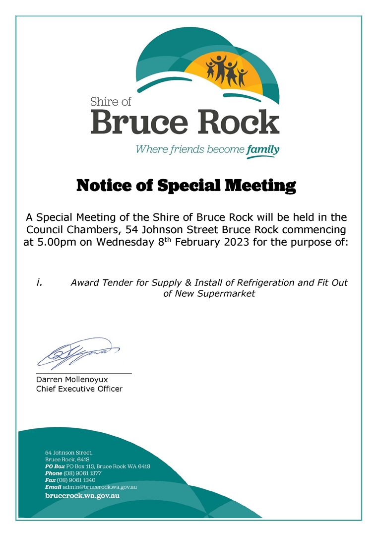 Notice of Special Council Meeting February 2023