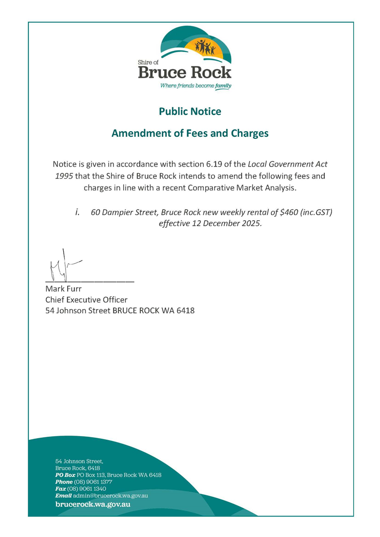 Public Notice - Amended Fee and Charge 60 Dampier Street