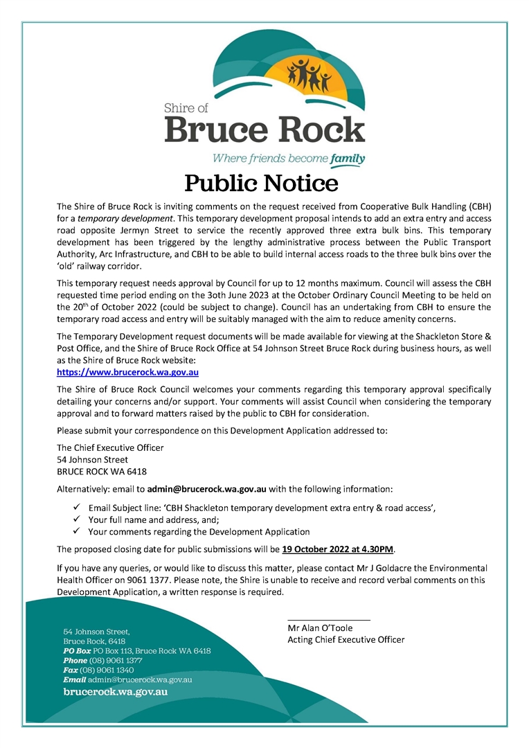 CBH Shackleton Letter Site Plan for CBH Shackleton