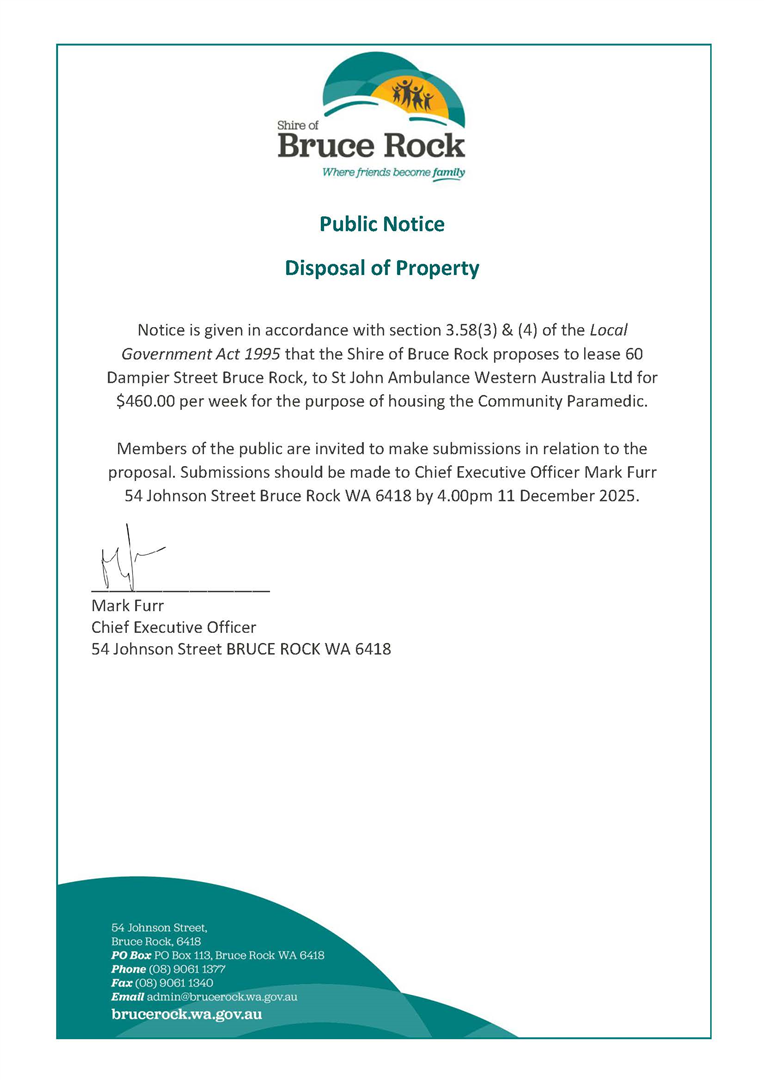 Public Notice Disposal of Property 60 Dampier Street
