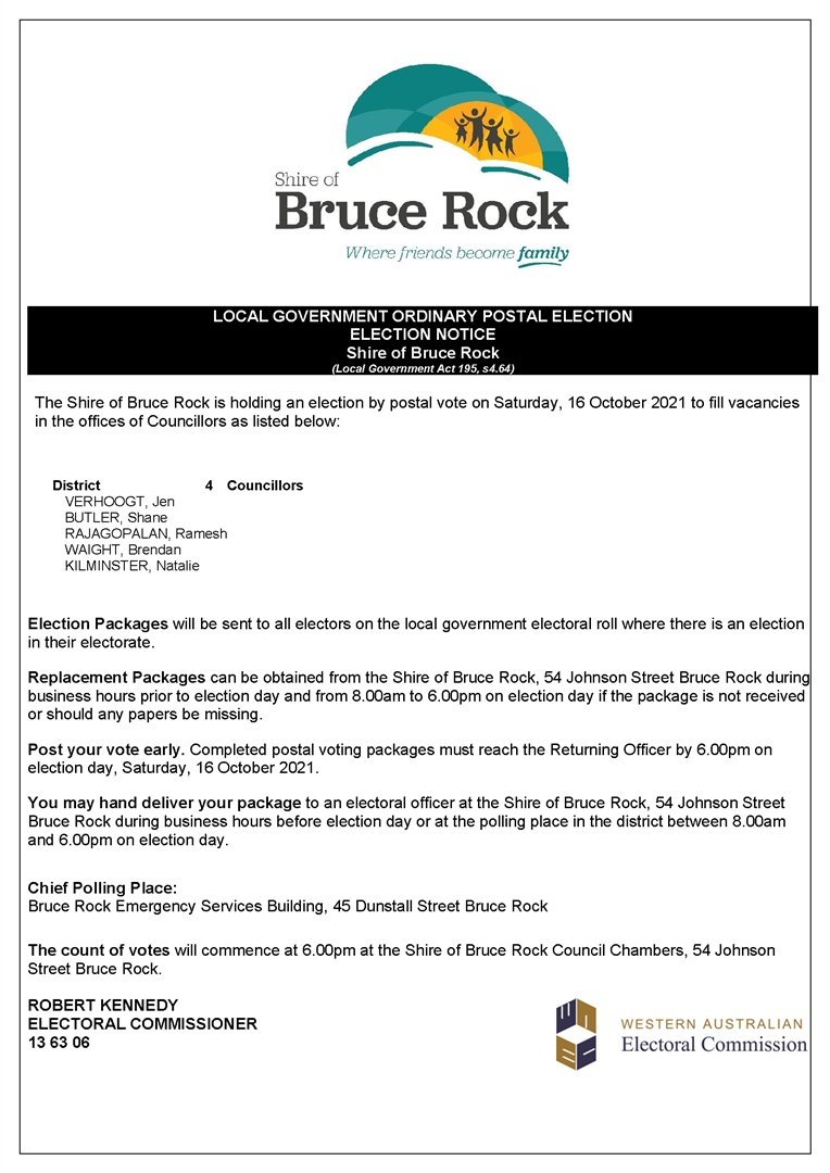 Shire of Bruce Rock Election Notice Notice Board A4 ORDINARY