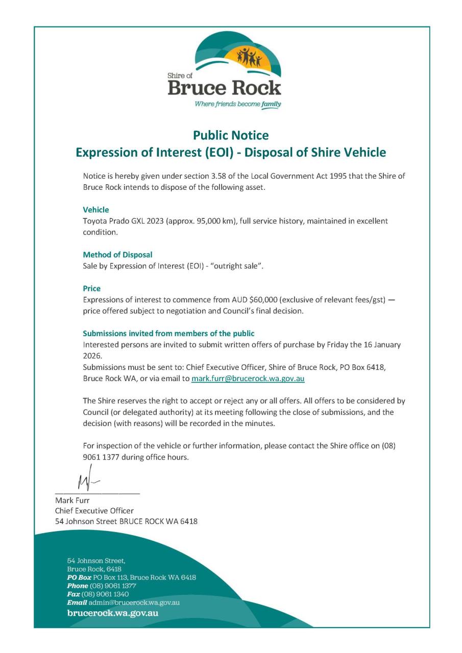 Public Notice Expression of Interest (EOI) - Disposal of Shire Vehicle